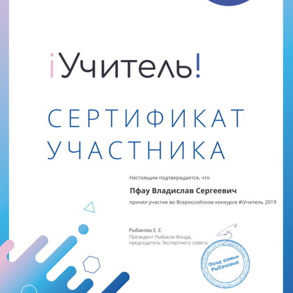 Диплом участника Всероссийского конкурса "Лучший учитель 2018", Москва, 2018 -